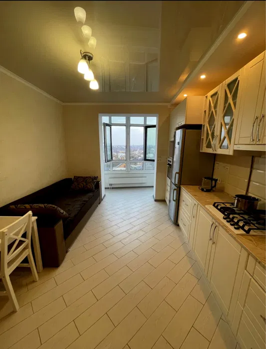 В квартирі виконано якісний європейський ремонт. Встановлено індивідуальне газове опалення, нові металопластикові вікна (панорамні) та всі комунікації. Простора кухня 10 м² з виходом на лоджію. Квартира продається з меблями та технікою: встановлено кондиціонер, бойлер, підключено Wi-Fi.